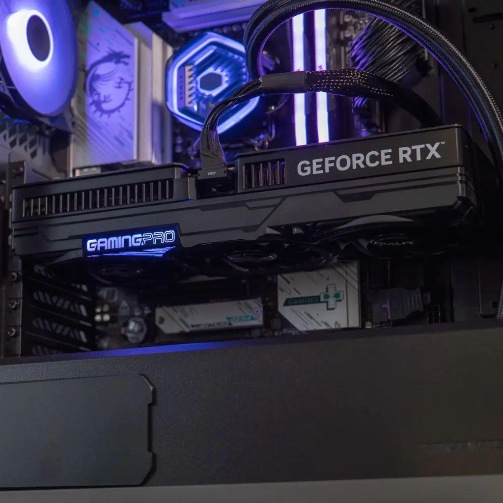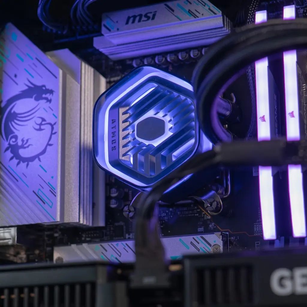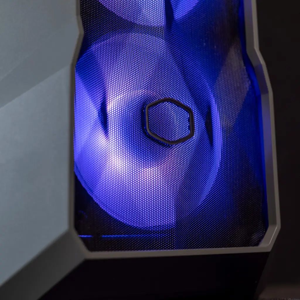 •Gehäuse: COOLER MASTER-Tower mit optimiertem Airflow-Design, RGB-Beleuchtung und integrierter Flüssigkeitskühlung