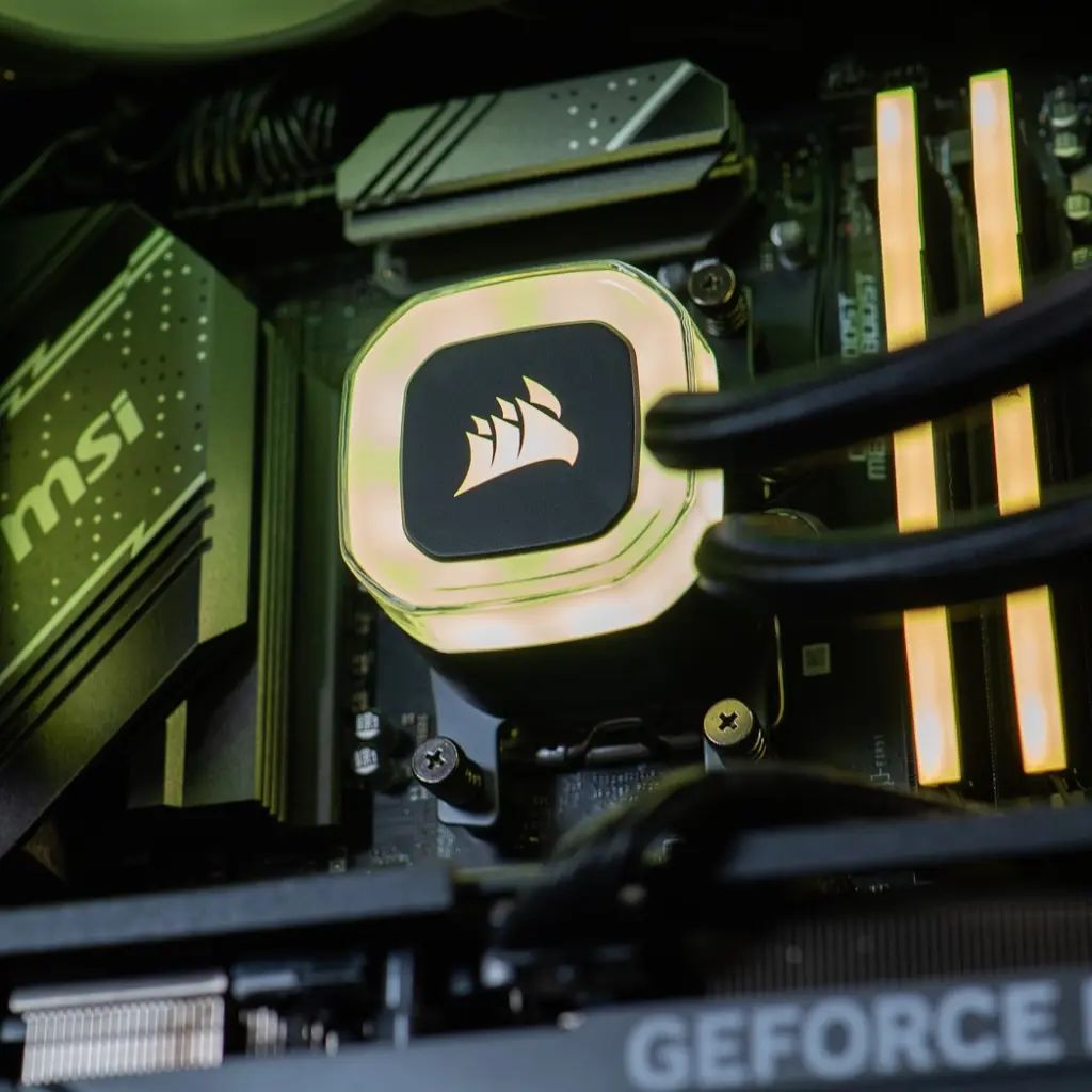 •Gehäuse: CORSAIR iCUE-zertifizierter Tower mit anpassbarer RGB-Beleuchtung und Flüssigkeitskühlsystem