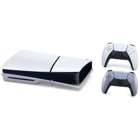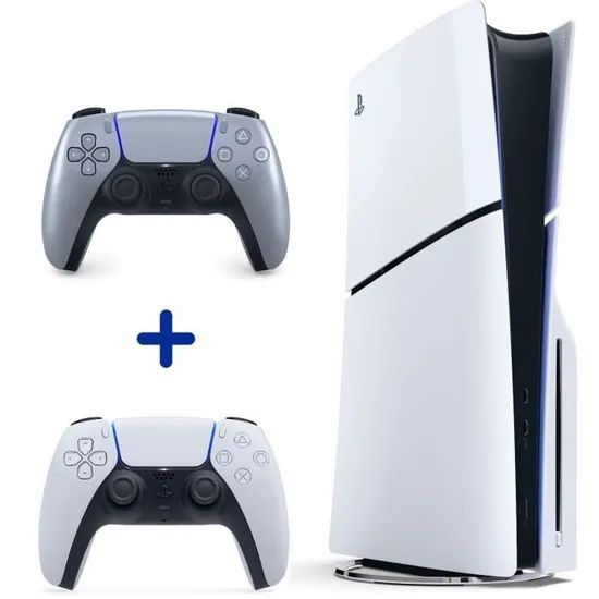 PS5 Slim-Konsole, weißer DualSense-Controller, Sterling Silver DualSense-Controller, NBA 2K26 (Code), Kabel und Handbücher
